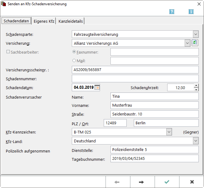 Der Inhalt der Schadenmeldung ergibt sich durch das Beantworten des Fragebogens, der dank smarter Antwort- und Verzweigungslogik schnell ausgefüllt werden kann. Nachrichten werden, wie beim E-Rechtsschutz, automatisch in den Posteingang oder in den Postkorb abgerufen.