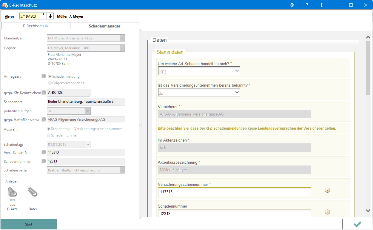 RA-MICRO bietet mit der kostenlosen E-Rechtsschutz Schnittstelle eine direkte Kommunikationsmöglichkeit mit Versicherungen. Nun wurde diese Schnittstelle um die Kommunikation mit Haftpflichtversicherern erweitert. Mit dem Kfz-Schadenmanager können Schadenmeldungen und Folgekorrespondenzen elektronisch übermittelt werden.